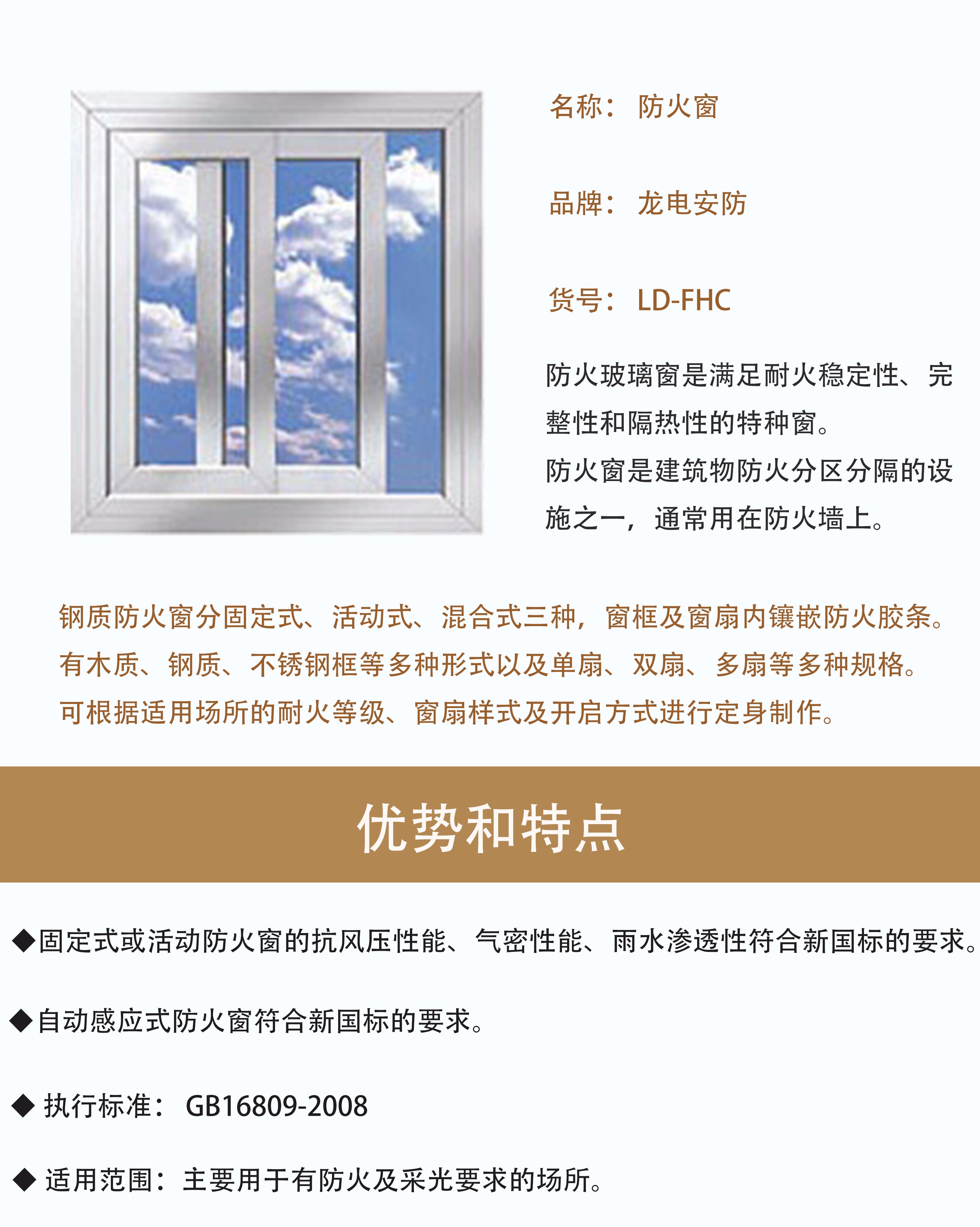 適用范圍:主要用于有防火及采光要求的場所。