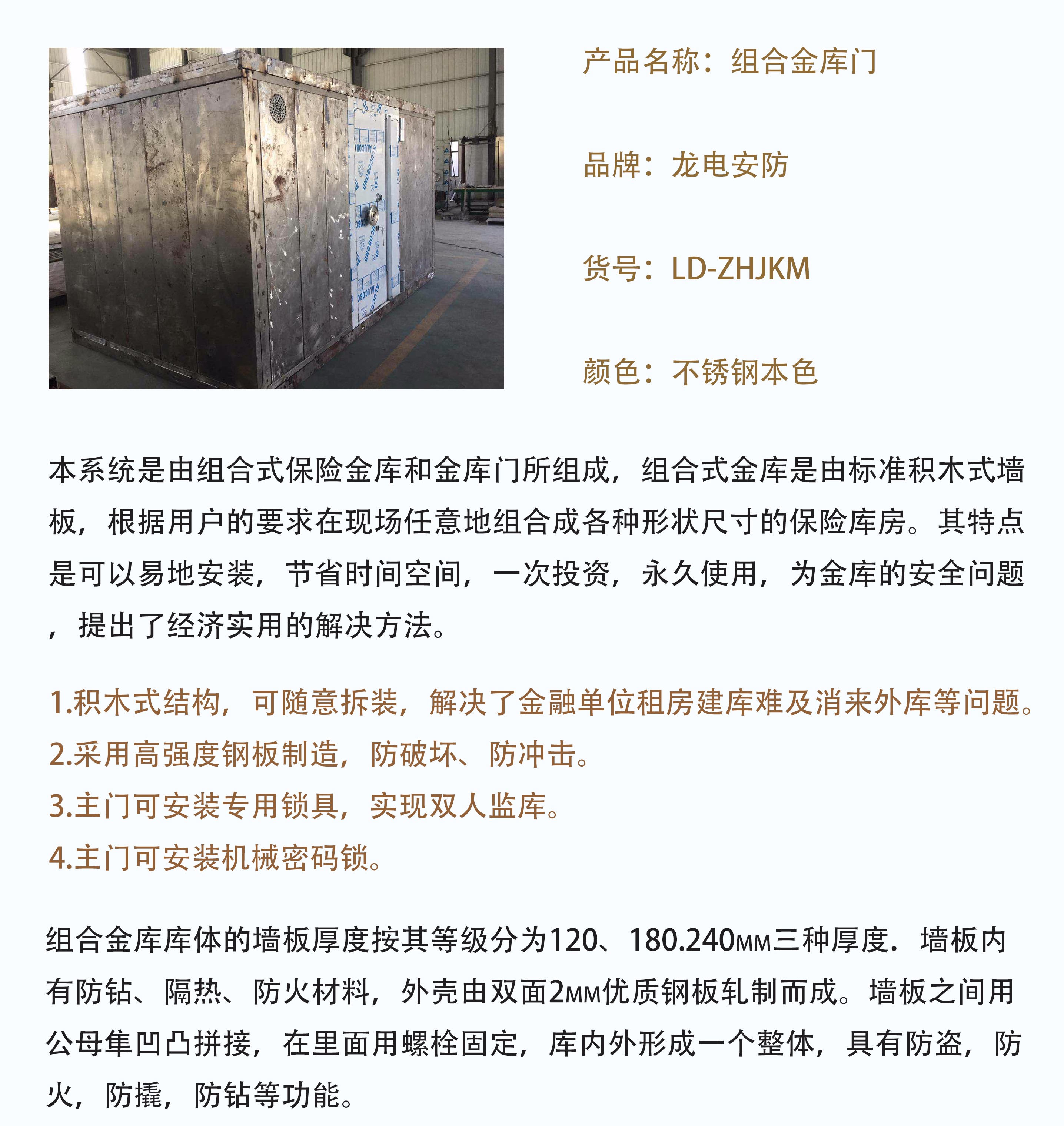 本產(chǎn)品其基本結(jié)構(gòu)為帶有防鉆、防火焰切割功能的龍電特種合金保護(hù)的門扇、門框及日閘門,有一把美國(guó)UL認(rèn)證的LG機(jī)械密碼鎖,一把防盜鎖。輕松靈活的執(zhí)行機(jī)構(gòu),外表面不銹鋼包覆層。本產(chǎn)品達(dá)到中華人民共和國(guó)公共安全行業(yè)標(biāo)準(zhǔn)及國(guó)際防盜、防火等級(jí)標(biāo)準(zhǔn)。
